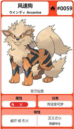 风速狗属于火属性宝可梦,洗翠地区形态的风速狗则是火属性与岩石属性的宝可梦。洗翠风速狗在捕猎时,会让熊熊燃烧的火焰缠绕于牙齿,而后猛扑向猎物。尽管它身形庞大,却能够凭借灵活的假动作戏耍对手,其展现出的姿态宛如舞蹈一般。