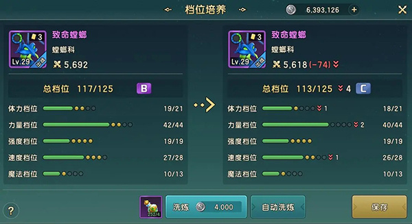洗炼时,也不必追求A级或者更高总档位洗炼,b级相对较高即可。