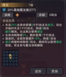 随着斧头时装技能“爆发”的加入,斧头得到了一次极大的提升。满级的“爆发”每次使用能净赚3点行动力,但代价是消耗大量的血量与蓝量,尤其是血量,稍有不慎角色就会暴毙。