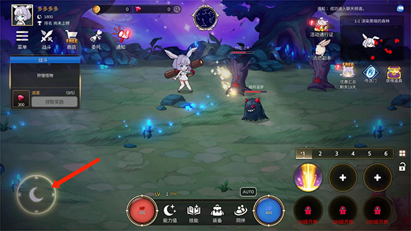 4、邪恶的黑暗吞噬了美丽的月光,你会变成一只月亮兔,月亮的守护者,现在你需要去冒险并升级你的角色。