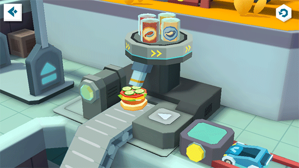 还差最后一步——添加面包盖,美味汉堡就能大功告成!不过还有一个小考验——通过趣味弹球桌:宝宝快启动弹跳格,让汉堡进入弹球桌,翻滚起来!