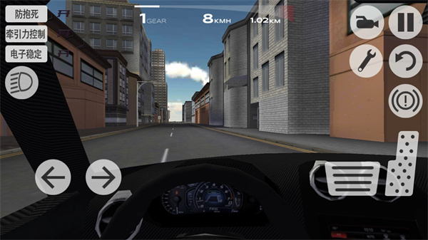 操作方式也可以自由选择,有点击式,轮盘式和手机摇动。让我意想不到的是游戏还可以昼夜切换,车灯方面做的很好。漂移的话有一个专门的漂移键。视角也可以在常见的三个视角之间来回切换。音效和音乐方面应该算是弱项,没有让人振奋的引擎发动,漂移也只有单调的摩擦声,这点你司还要加强。