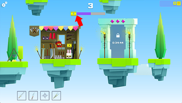 4、当来到武器商店后等待上方的紫色广告条加载满即可通过观看广告来免费获取一把随机武器
