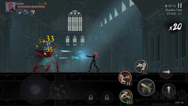 3.选择好角色后,等待一会加载,进入游戏后如图,左边控制移动,右边控制攻击、技能、跳跃等功能;