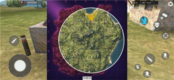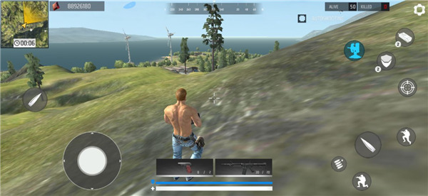 7、落地后通过操控虚拟按键,使人物移动,同时拾取地图中的枪械武器,用以消灭其他对手。