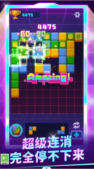 3.每次消除方块时,都会呈现特效技能,使得整个画面精彩纷呈。