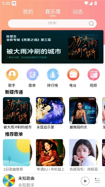 2.进入首页,可以看到各种歌曲资源点击即可播放