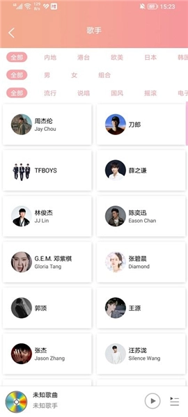 3.自带歌手版块,可以选择喜爱的歌手收听他的全部歌曲