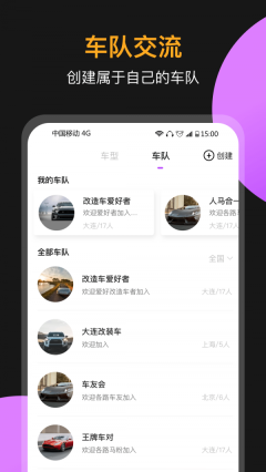 2、在汽车交流社区,不仅能看到精彩纷呈的炫酷汽车短视频,还鼓励用户去体验真实的汽车生活。这里有超3000个品牌车系的车友圈,快来找到属于你的圈子并加入吧!