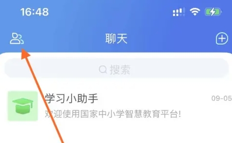 进入智慧中小学APP首页,点击左上角的【通讯录】新秤。