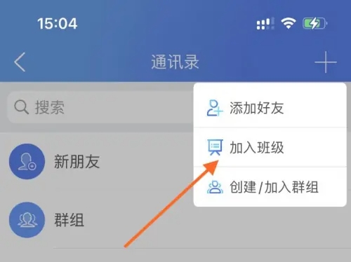 打开通讯录,点击【添加】,在下拉列表中选择【加入班级艺扬霸】。