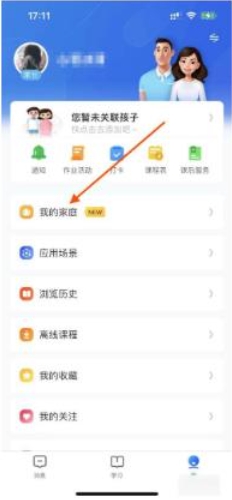 在个人主页上,点击“我的家庭”这一选项。