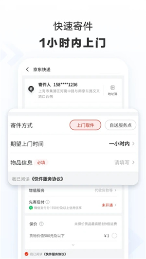 此外,借助京东快递app能够进行上门预约取件,让您足不出户就能轻松便捷地寄件。您只需准确填写寄件基本信息与上门取件时间,随后等待快递小哥上门即可。想快速知晓自己的京东快递到哪儿了吗?那一定要来体验下京东快递app,速度与温度兼具。
