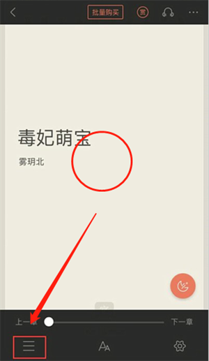 3、此时我们便进入了小说的阅读界面,接着点击手机屏幕中心,随后点击左下角的“三”(此为目录功能标识)。