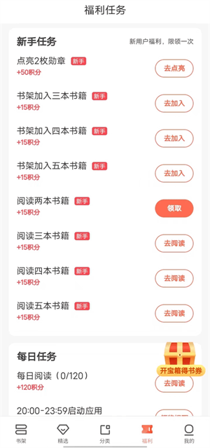 每天签到可获得书券奖励,观看小视频奖励可翻倍;