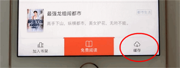 2. 在小说内容页面,点击内容中心以呼出菜单键,接着点击菜单里的“缓存”按钮。