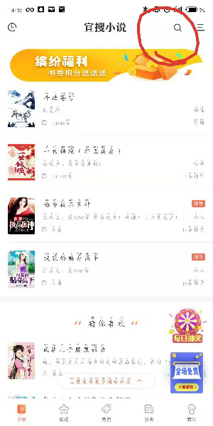 1、点击打开宜搜小说app,然后点击页面右上角的“搜索”图标。