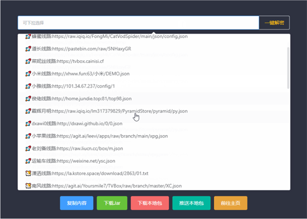 2、这些接口,可以直接复制使用,也可以点击【一键解密】之后,复制出来,制作成自己的接口。
