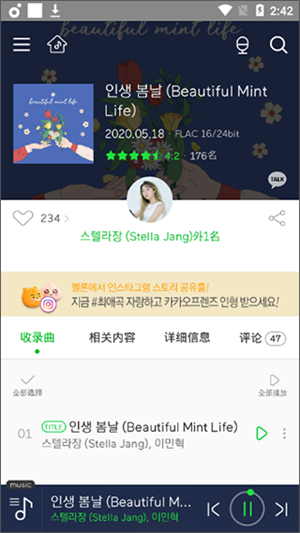 Melon永久免费账号版不仅拥有海量的韩国歌曲供我们的用户进行选择之外,同时我们也可以通过这款软件来收藏你喜欢的歌曲,将这些歌曲放到你的音乐抽屉里。Melon永久免费账号版无限瓜还为用户们提供了诸多韩国艺人的信息,方便你追星。