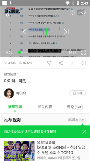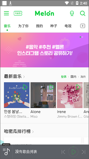 1、歌名基本都是原本的语言,是英文就是英文,是韩文就是韩文,不过没事,点击播放键即可播放,如果有感兴趣的歌手,可以先去百度下韩文名,然后再进行搜索;