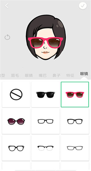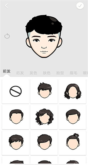 4、进入编辑面板后,用户就可以自定义自己的形象了,软件提供了前发、后发、发色、肤色、脸型、眉毛、眼睛、嘴巴、鼻子、特征、胡子、眼镜用户免费使用。