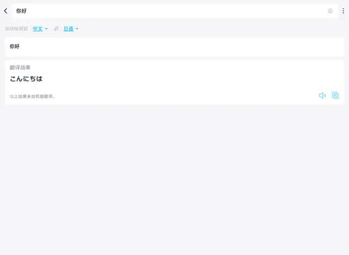 5、目前中日互译翻译出来的话只有翻译的结果,没有其他的具体释义。而点击翻译结果右侧的按钮可以朗读译文或是复制译文。