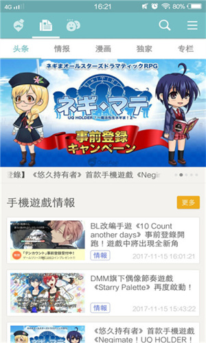 2. 进入情报界面,即可查看游戏的最新资讯。