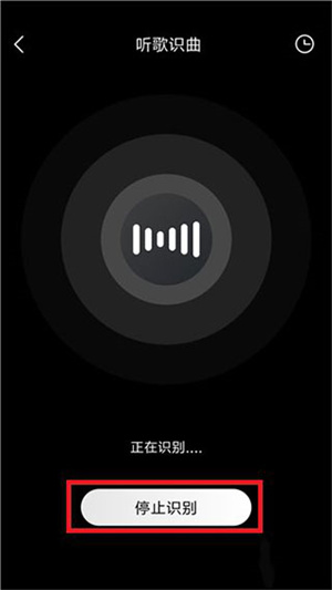 5、当歌曲播放结束后点击界面中的【停止识别】,这样系统就会识别刚才我们播放的歌曲。
