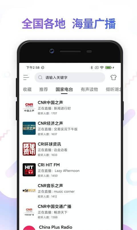 4、显示国家电台,包括中国之声,音乐之声,经济之声和中华之声等,让你畅听全国的声音;
