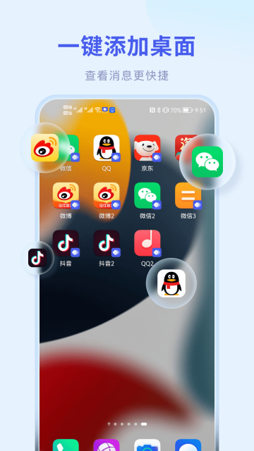 4、把分身添加至手机桌面,随时随地管理分身应用,收发消息更为便捷!