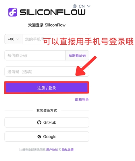 1、在手机浏览器中搜索“硅基流动统一登录”注册登录