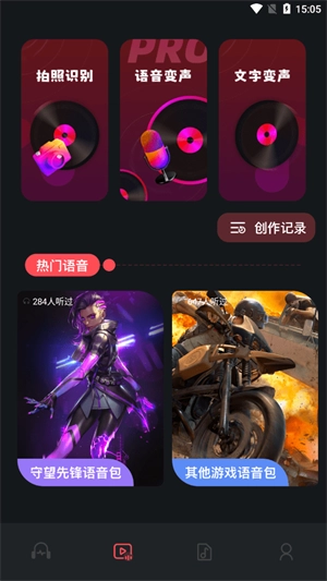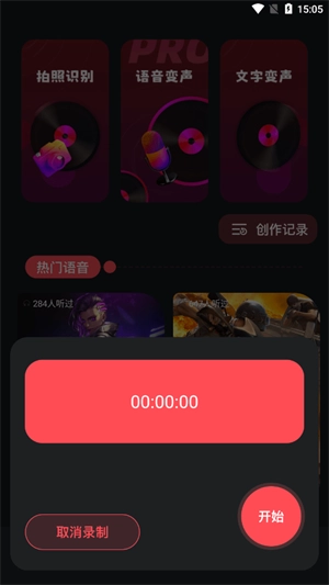 2、轻点语音变声功能,随即能够录制个人声音,进而将其转化为期望的效果。