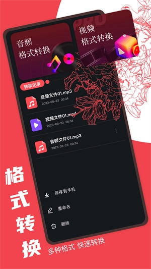 1、音频格式转换:支持多种音频格式之间的相互转换。