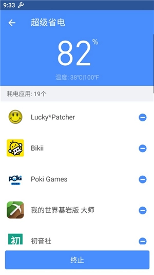 3、最后点击下面的“终止”,就可以关闭不必要的,给手机省电啦。