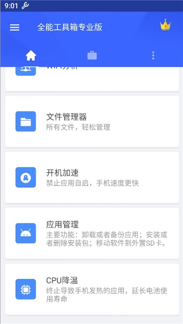 1、在本页面全能工具箱专业版,然后发开进入主页,在这里下滑点击“应用管理”。
