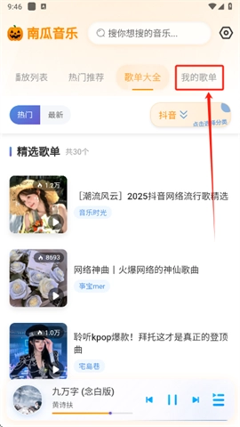 1、打开南瓜音乐,点击顶部的“我的歌单”选项。