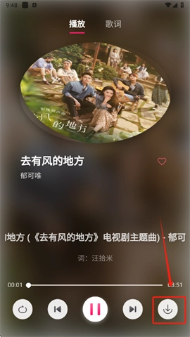 2、进入音乐的播放页面后,点击页面上的“”图标。