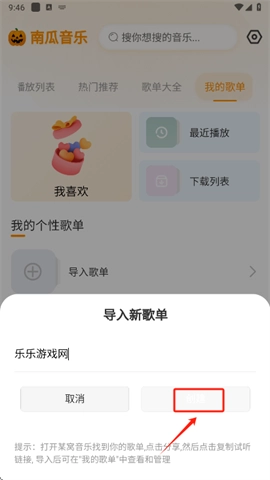 2. 当进入“我的歌单”页面,点击“导入歌单”按钮。