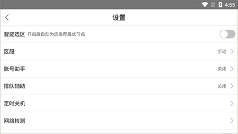 4、“设置”中可以根据需求调整智能选区、区服、账号助手等功能,确保最佳游戏体验。