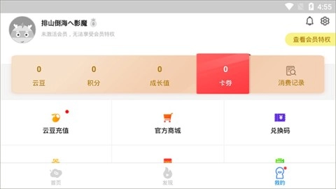 3、在“我的”页面,有丰富的功能选项,比如云豆充值、商城、兑换码等,更有“设置”可以调节个性化体验。