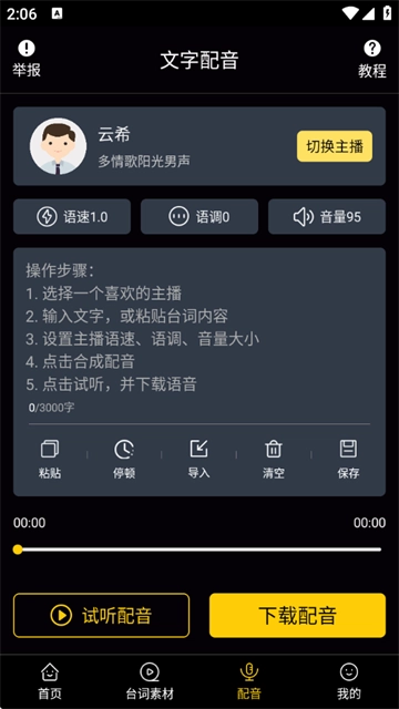 智能将您的台词文案转换成热门的上百种音色,实现不同台词文案内容一键配音。