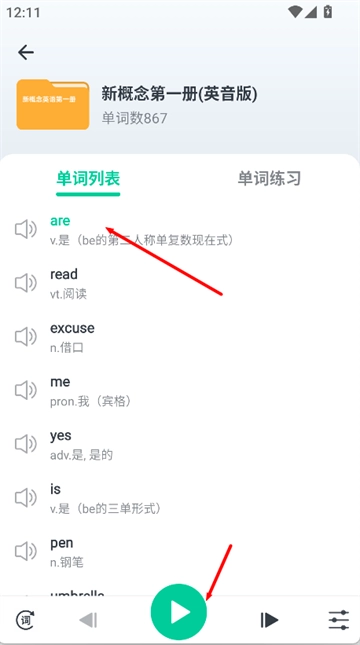 3、轻点播放按钮,就能聆听对应单词的发音内容。
