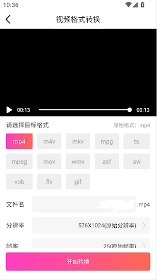 视频格式转换: