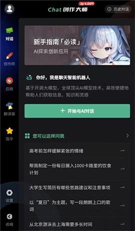 如何使用AI创作专家 1、点击“开始与AI对话”,输入问题后就能获得答案。