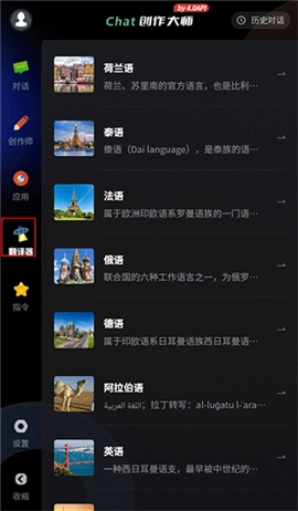 4、在翻译器界面,可以用帮助用户翻译荷兰语、泰语、法语、俄语、德语、阿拉伯语、英语、日语等多种语言。
