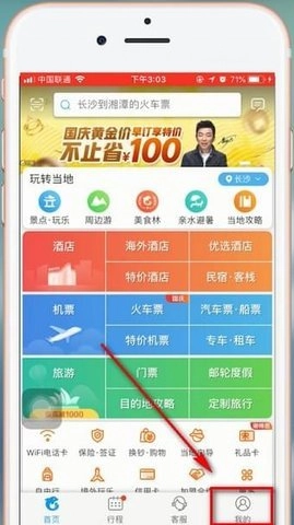 首先,打开携程旅行App,并点击右下方的【我的】。