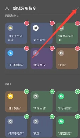 3、完成添加操作后,勾选右上角的对勾即可。