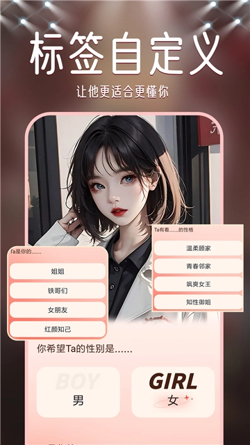 虚拟恋人男女友,这可是一款超好玩有趣的智能AI聊天软件!在这儿,你能够和虚拟人物畅快互动对话,随心所欲自主生成男友或女友。不仅如此,还能亲手雕琢五官,打造出绝美容颜。AI伴侣全天24小时在线,时刻为你守候。当你一个人觉得无聊时,就可以找Ta聊聊天,尽情发泄情绪。而且,还支持语音沟通,互相发表情包,转发动态来提升彼此的好感度。喜欢这类软件的小伙伴,赶紧来虚拟恋人男女友体验一番吧!